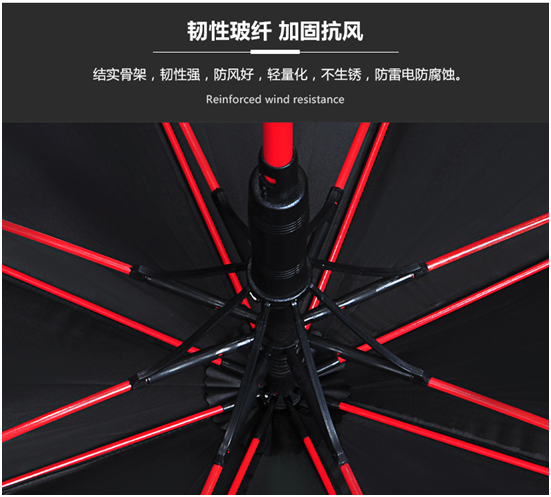 現在高爾夫傘在很多高檔酒店、高(gāo)級會所中,常常(cháng)被用(yòng)於禮品饋贈。可想而知它有多火! 選擇這樣的高大上雨傘,並不完全是因為(wéi)它防風性能好,尺寸(cùn)大,這隻是其中的一小部分優點,選擇高爾夫傘的主要原因有三點 1、傘骨:傘骨架多(duō)采用(yòng)纖維材料(liào),纖維傘架韌性強,這種特有的(de)韌性(xìng),保證傘不會輕易的被大風吹斷。但有些人(rén)會站在成本的角度(dù)考(kǎo)慮,使用其他(tā)材質,但是用不了多久傘骨就會斷掉,正常情況是不(bú)建議客戶選用。